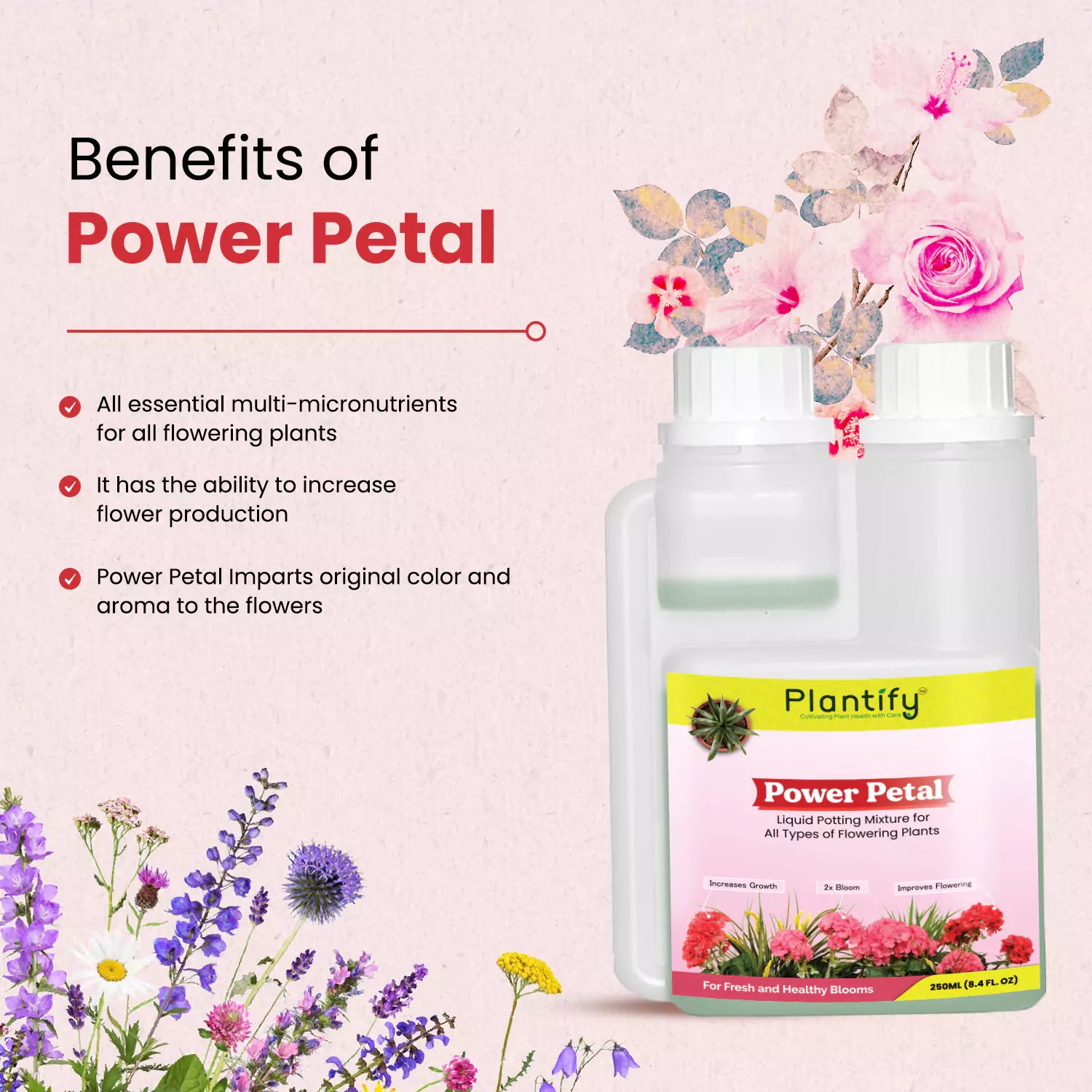 🌹Power Petal - Organic Liquid Potting Mixture provides a unique balanced blend of nutrients, such as Calcium, Magnesium, and Growth Promoters that feed your plants whenever they are hungry.😉 This eco-friendly and natural Potting mixture for flowering plants delivers all the essential nutrients to your blooms, ensuring your garden bursts with color.🌸